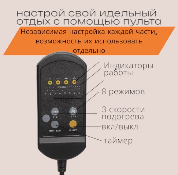 Зоны массажа: шея, спина, поясница, плечи, ягодицы